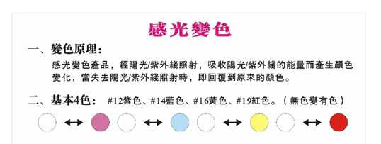 2、應避免感光變色粉與紫外光吸收劑同時使用。
